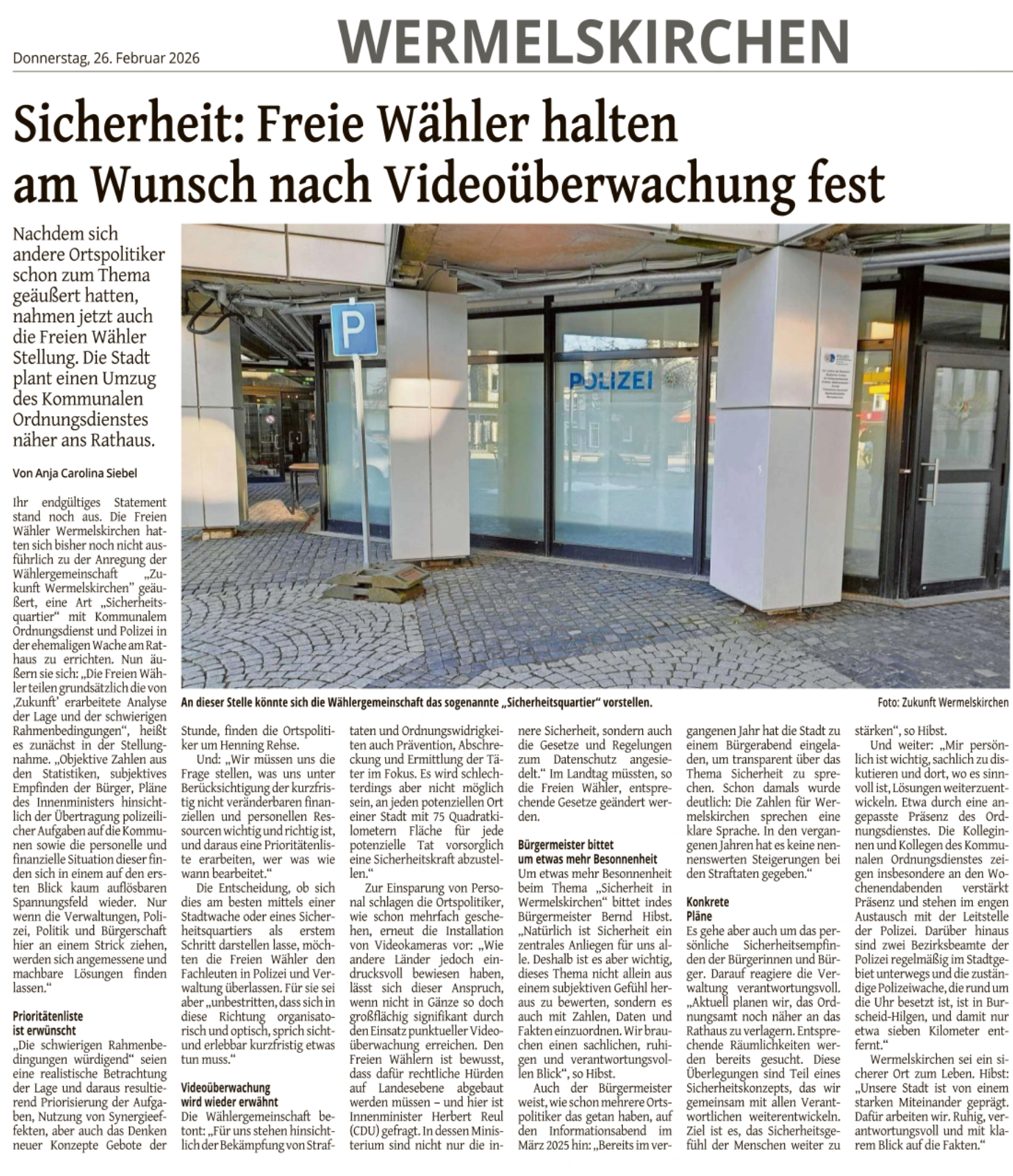 aufgrund der Beschlusslage des Rates wie auch der sich entwickelnden Flüchtlingszahlen ist davon auszugehen, dass das alte Polizeigebäude im Jahre 2018 seiner ursprünglich geplanten Folgenutzung mit VHS, Geschichtsverein, Stadtarchiv etc. zugeführt wird.